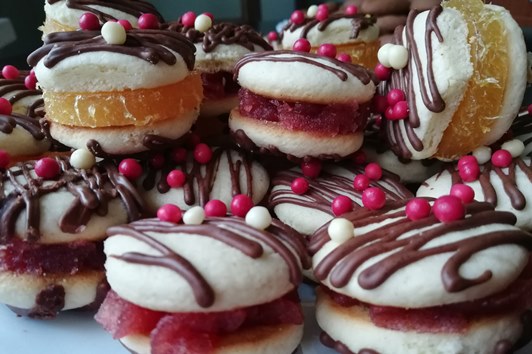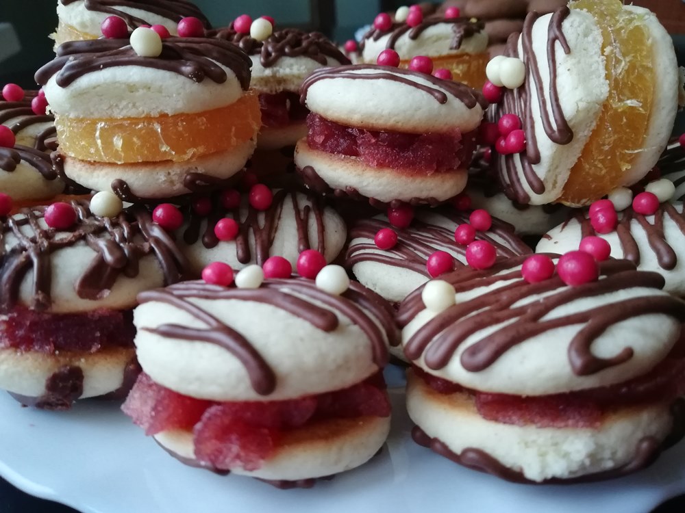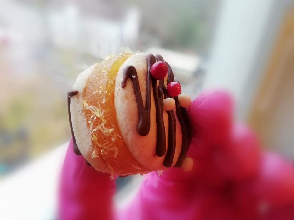 печенье шоколадом. Мармелад внутри апельсиновый или лимонный, сваренный на