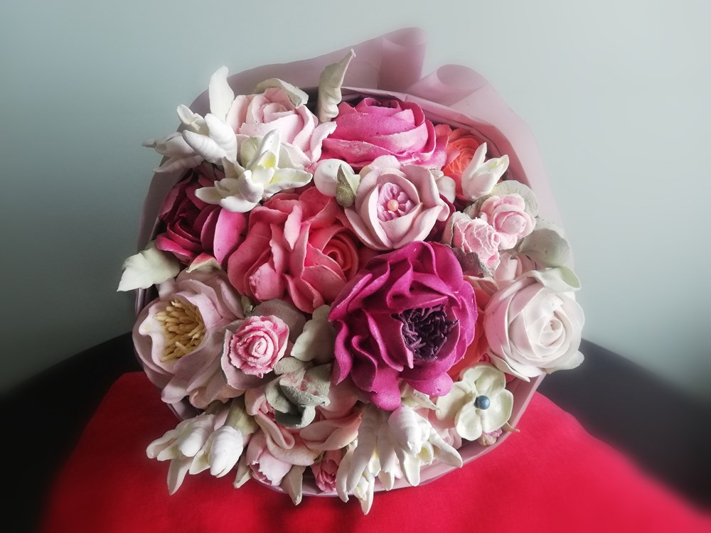 Диаметр основания 26 см! В букете минимум 7 крупных пионов.