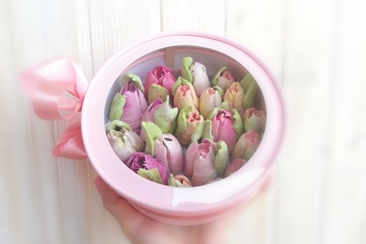 Самая элегантная коробочка, украшена атласными лентами с бантом, один слой зефирных цветов. Вес коробочки около 450 г. Самый востребованный подарок.